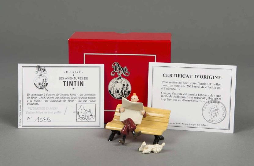 PIXI - Tintin - Tintin and HERGE MILOU on public bench n ° 1039 4528 ref 3 figurines album "ear cassee"