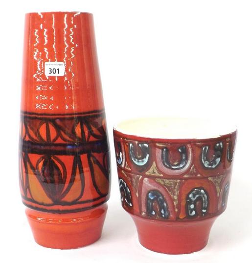 together with a further Poole Delphis tapered vase, 16" high (2)