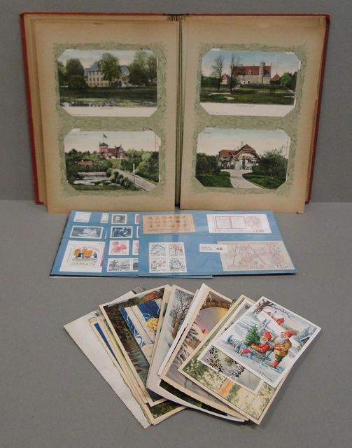 Postcard Album of Skåne Mr farms about 66ST, Booklet post healthy stamps nominal value 120 SEK and batch older cards