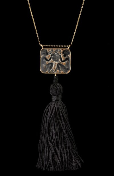 R. Lalique, pendant with two children holding a bouquet and ending with a black tassel