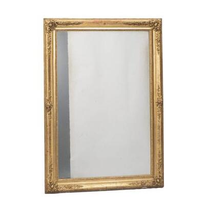 RECTANGULAR MIRROR DECORATED WITH GARLANDS AND FLOWERS IN GOLDEN STUCCO