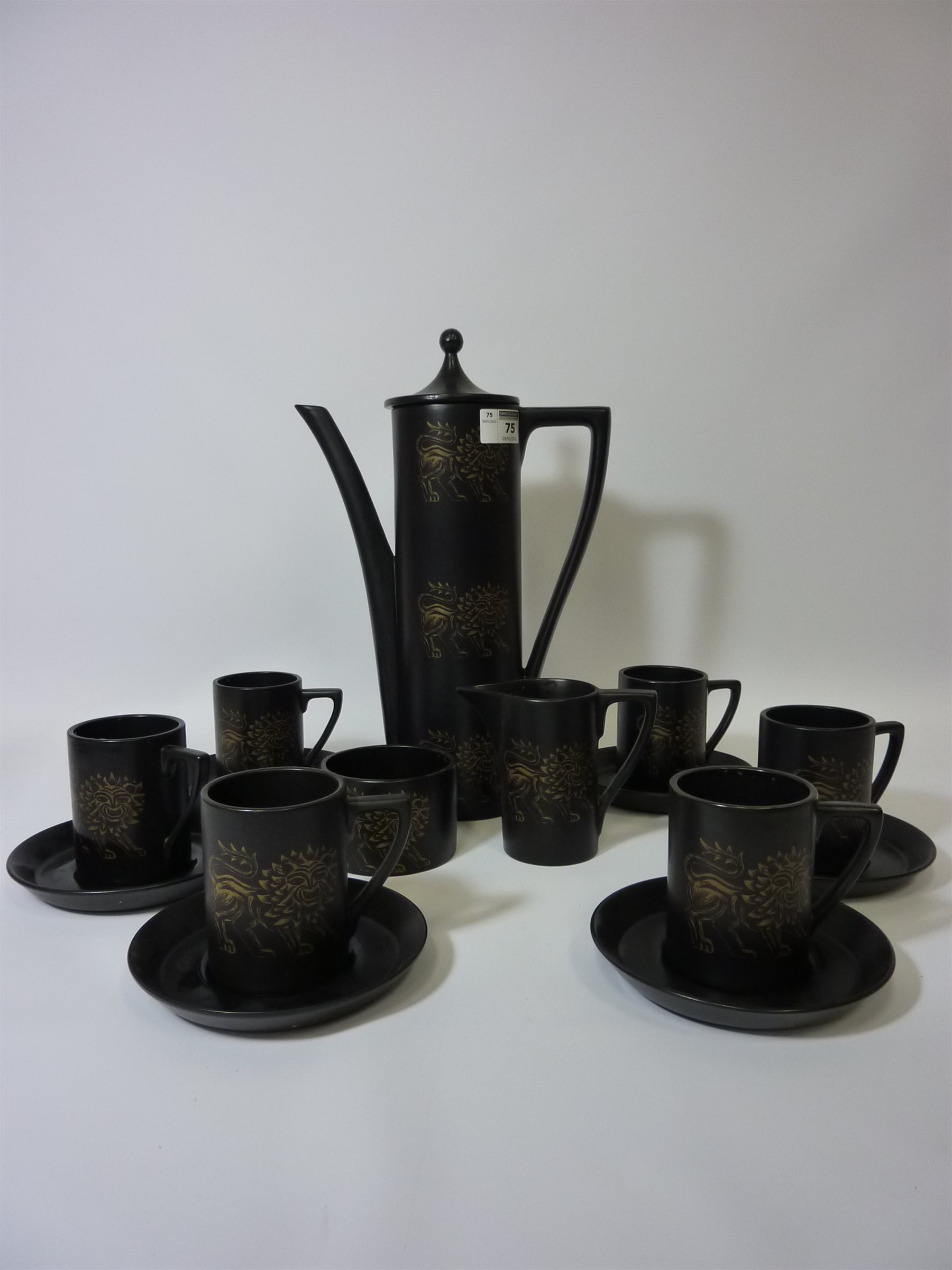 Retro Portmeirion 'Byzantine Gold Lion' coffee service - six place settings