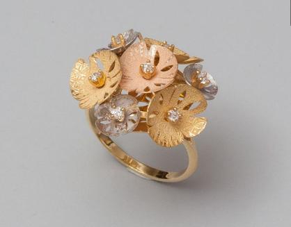 3 Amatis golds, 750 MM, centered by a brilliant, size: 54, weight: 4,7gr. gross