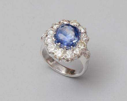centered sapphire weighing 6.64 carat cushion cut with his laboratory's expert report CGL September 2015, stating - without thermal modification - Original Ceylon in a row between two brilliant diamonds, total: approximately 2 carats, size: 51, weigh