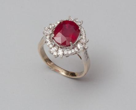 Ring in white gold, 750 MM, adorned with an oval ruby Treaty