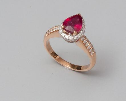 Ring two golds, 750 MM, adorned with rubies unanalyzed pear