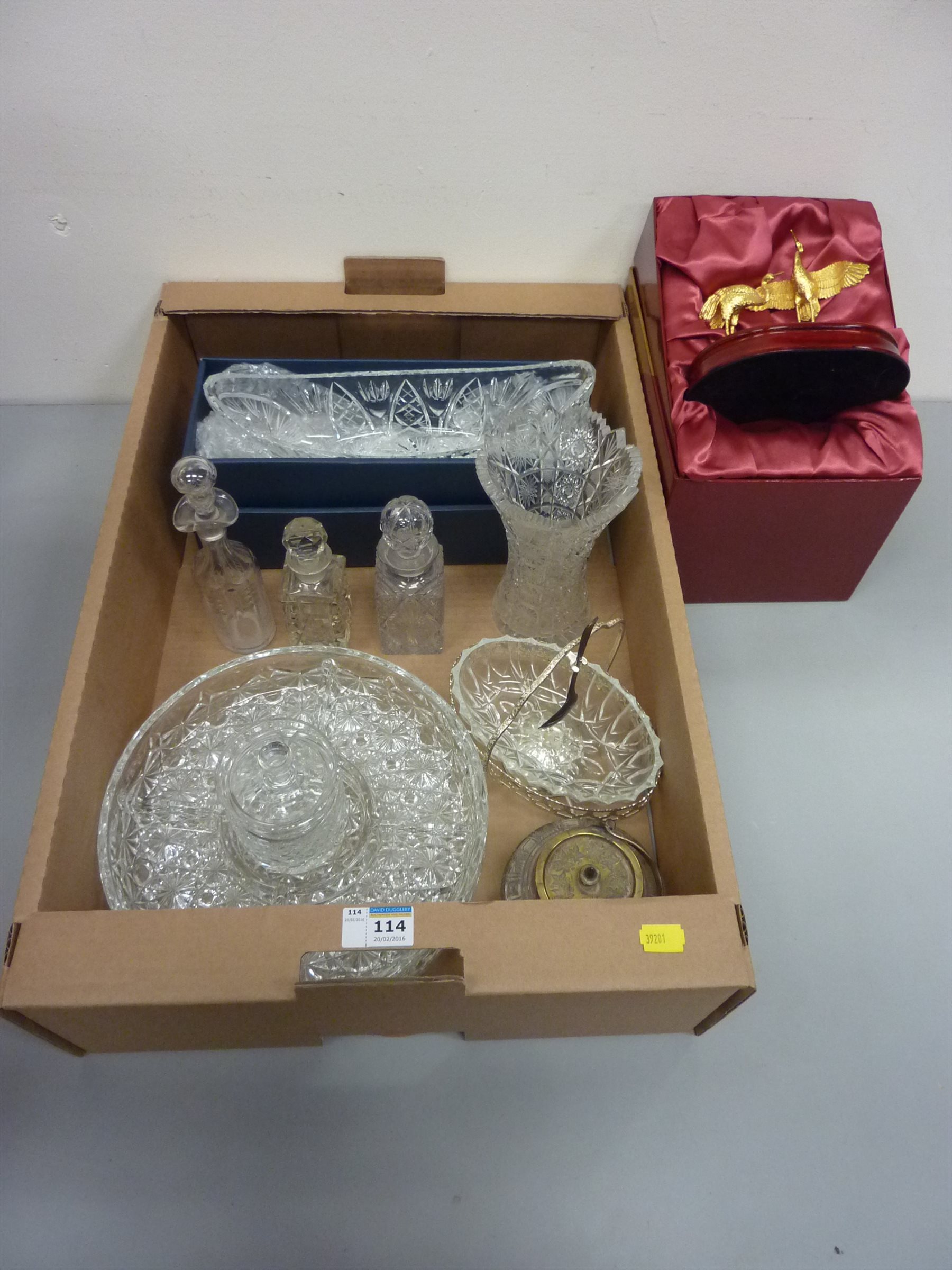 Risis crane sculpture H14cm (boxed) cut crystal vase H18cm, glass serving bowls and other glassware in one box