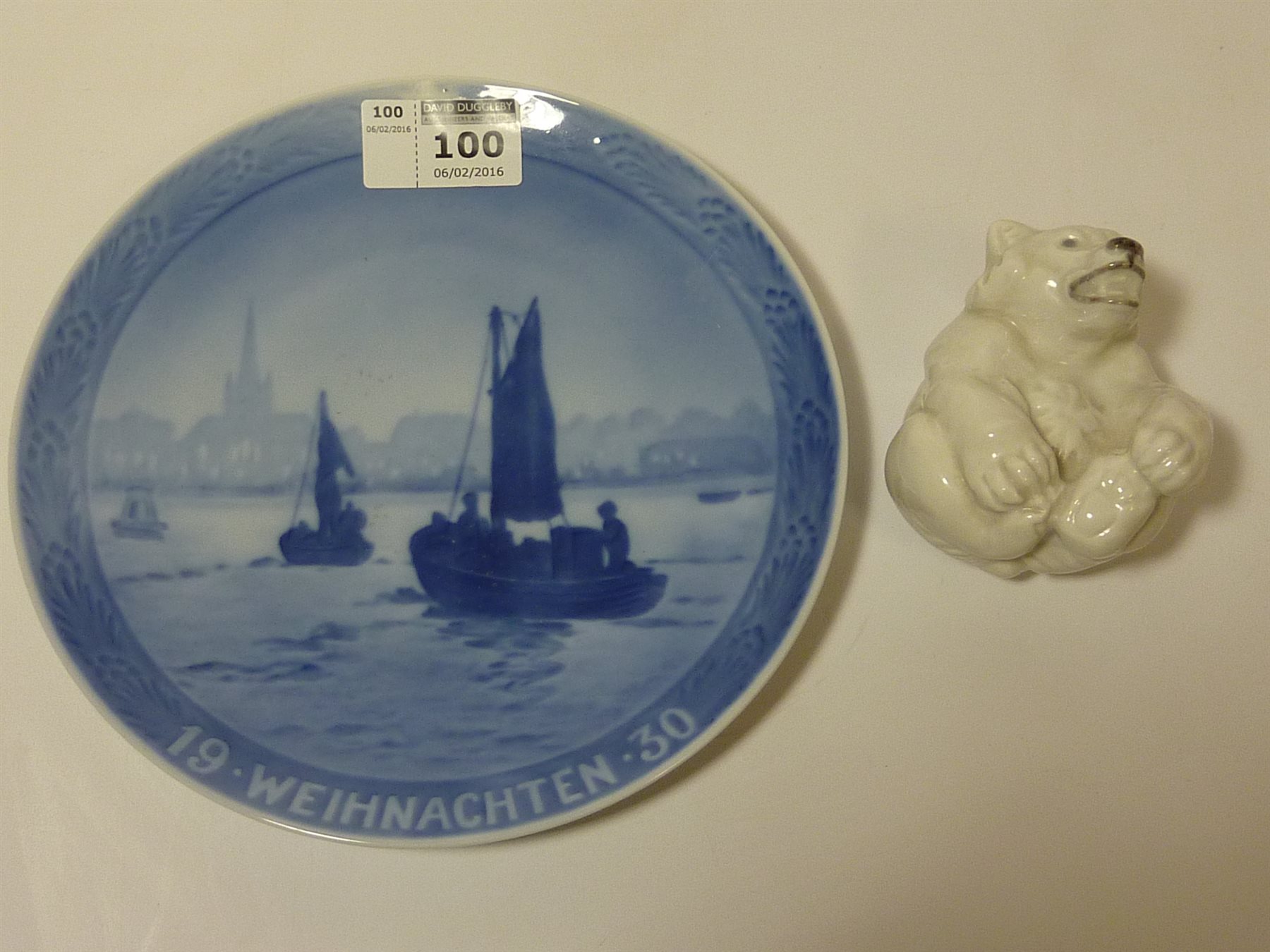 Royal Copenhagen Christmas plate 'Weihnachten 1930' D18.5cm and a Royal Copenhagen polar bear (2)