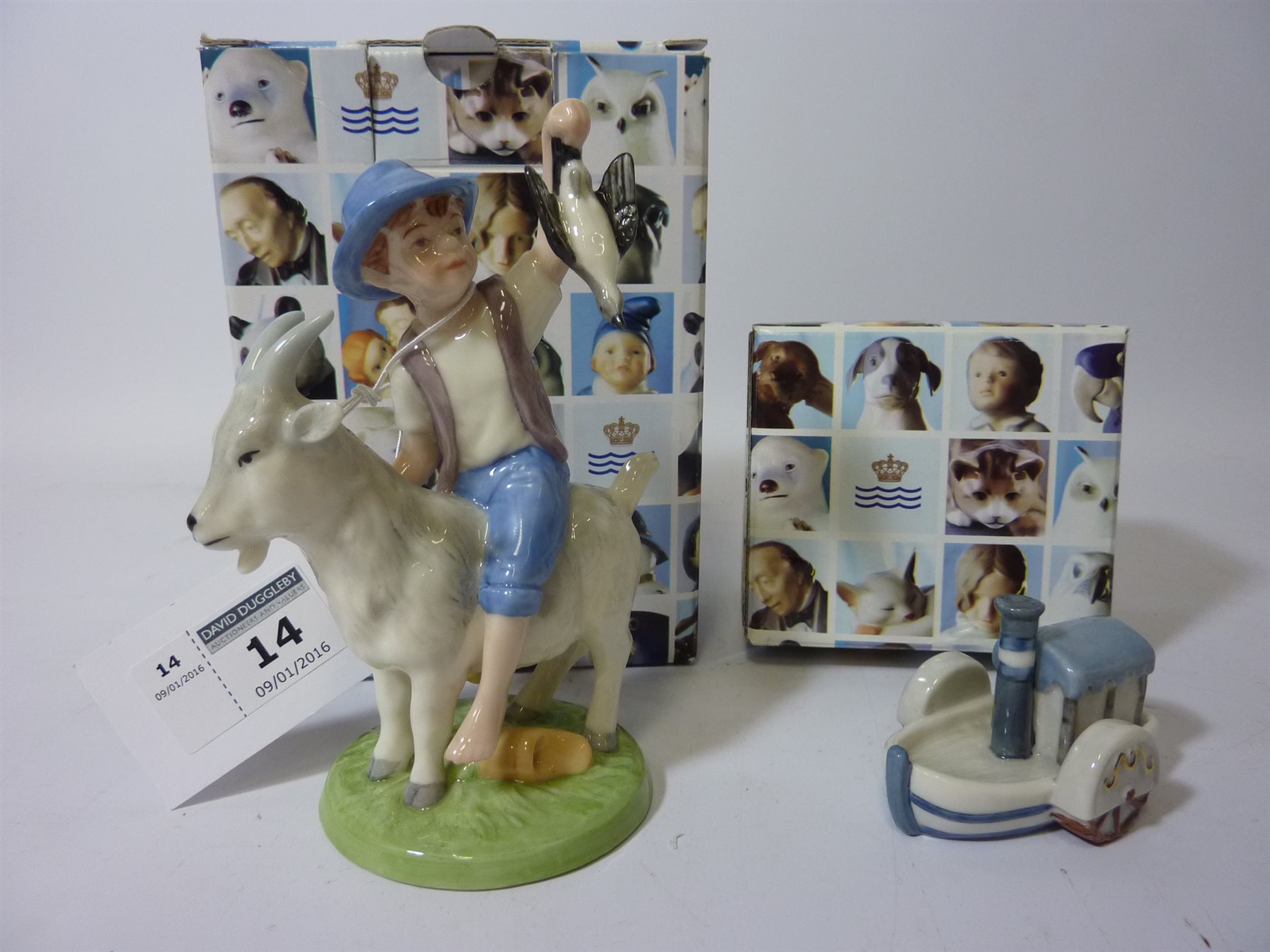 Royal Copenhagen figure 'Jack the Dullard by H.C. Andersen' and 'Steam Ship Damp Skib' (boxed) (2)