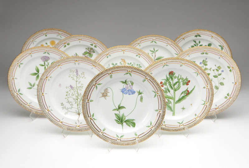 Royal Copenhagen ''Flora Danica'' dinner plates, 1960