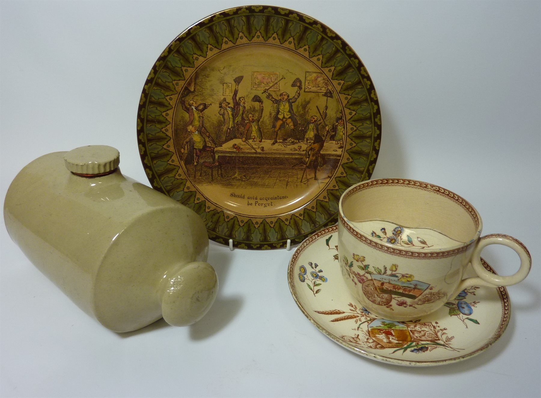 JFW Staffordshire moustache cup and a stoneware hot water bottle (3)