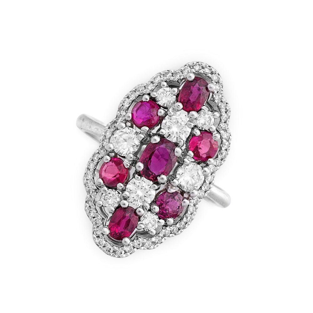 the oval pierced plaque claw-set with oval and round-cut rubies weighing approximately 1.40-1.50 carats, the round brilliant-cut diamonds weighing approximately 1.10 carats, size M½