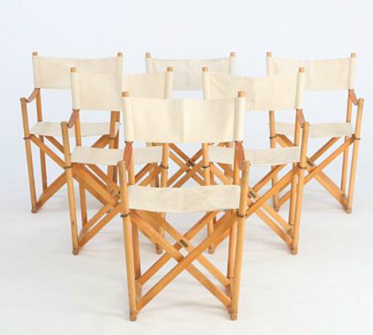 with beech frame and accompanying rack. Seat and back stretched with light canvas, armrests of natural leather