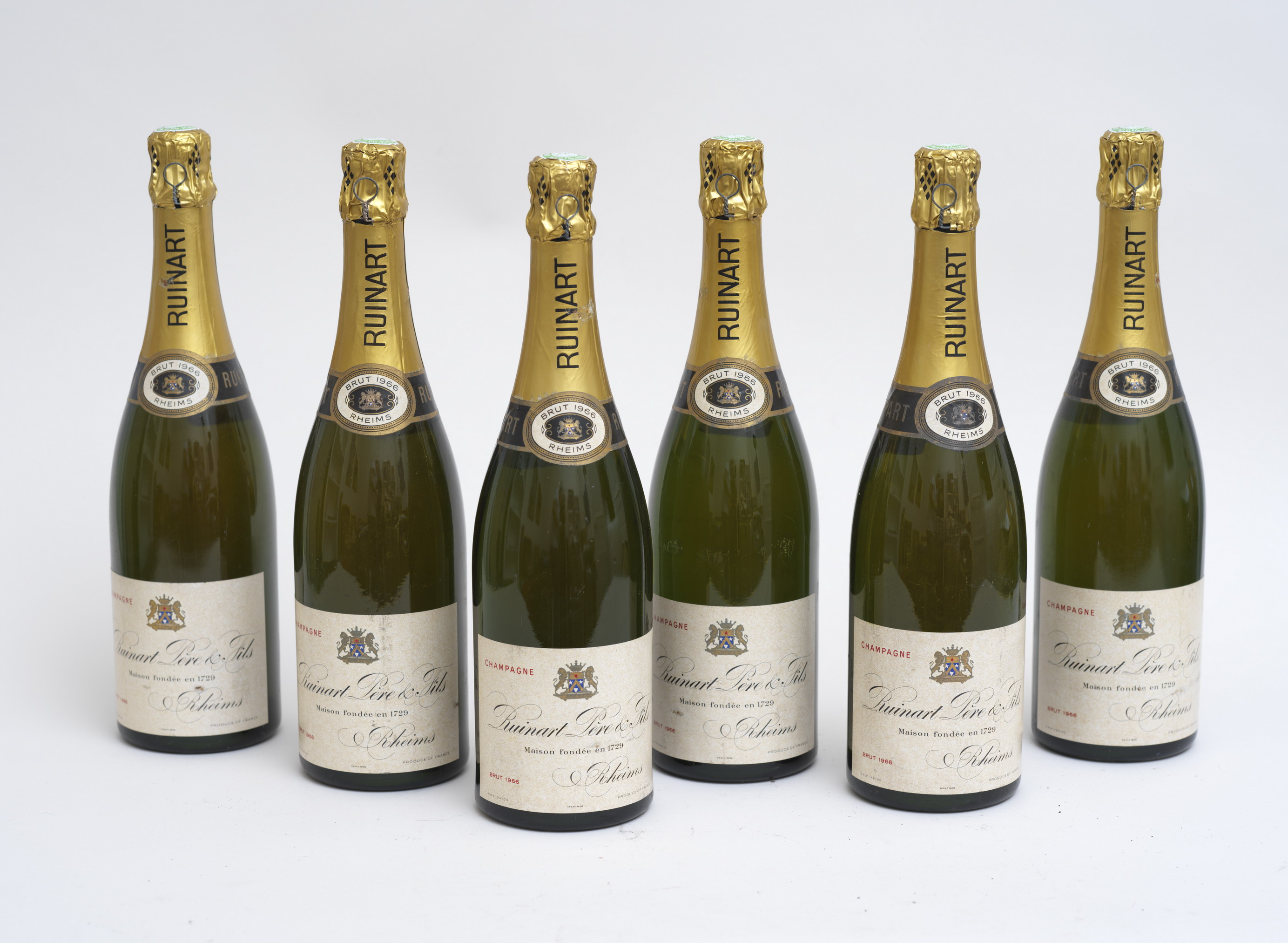 6 bottles CHAMPAGNE RUINART 1966 Vintage (faded, lightly marked labels)