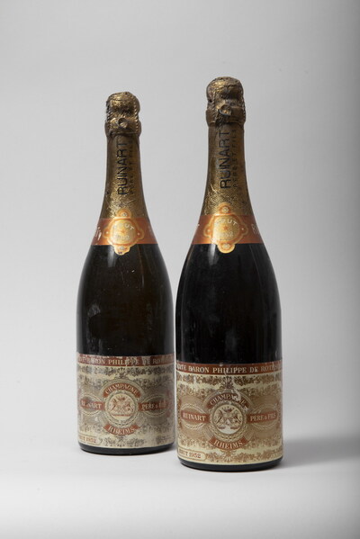 RUINART - Deux bouteilles de Champagne brut Ruinart Père et Fils, Baron Philippe de Rothschild 1952