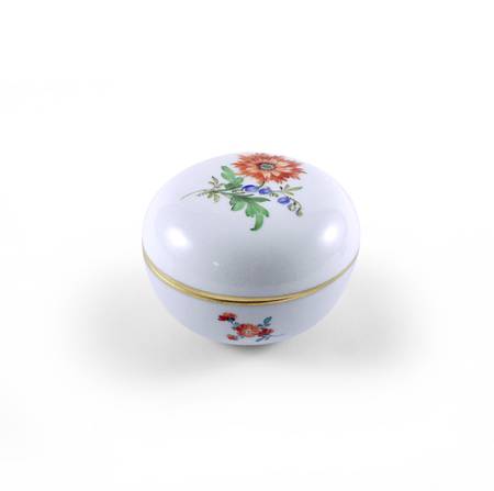 Polychrome Zweierblume. Goldrand. Blaue Schwertermarke Meissen, 20. Jh. Ø 9 cm