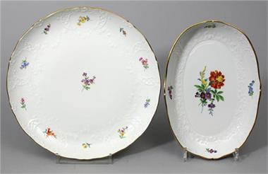 Runde Kuchenplatte und ovale Schale, Meissen,