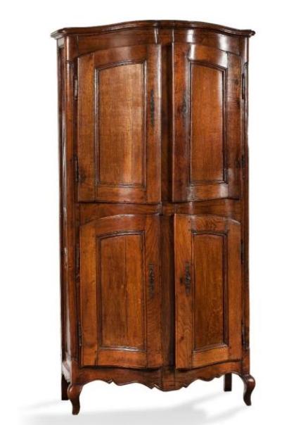 Of crossbow shape, it opens by four doors. Rounded uprights, arched feet