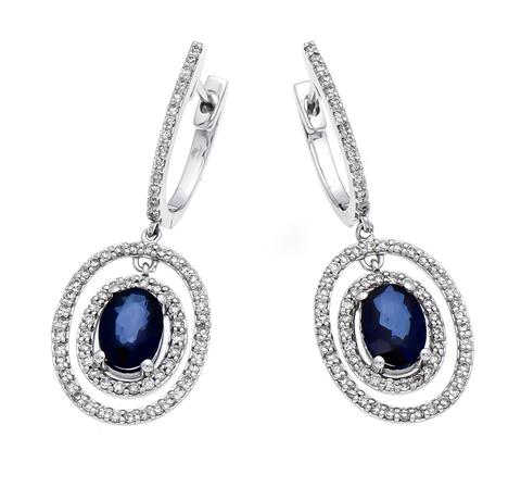 Saphir-Brillant-Clipohrstecker WG 585/000 mit je einem feinen oval fac. Saphir, zus. 1,78 ct in guter Farbe und Reinheit sowie 144 Brillanten, zus. 0,68 ct W/VS-SI, L. 30 mm, 4,4 g