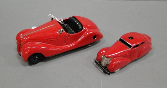 Schuco 2st bilar, nr. 3000 L10,5cm, nr. Akustico 2002 L14cm, kaross lös samt glas saknas, ej funktionstestade