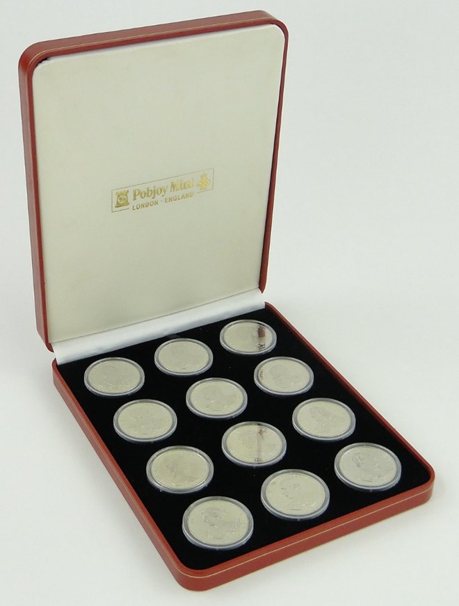 Set of 12 proof silver Commemorative Gibralter Crowns, cased.