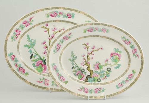 Set of five Maddock oval meat plates and dishes, Indian Tree pattern