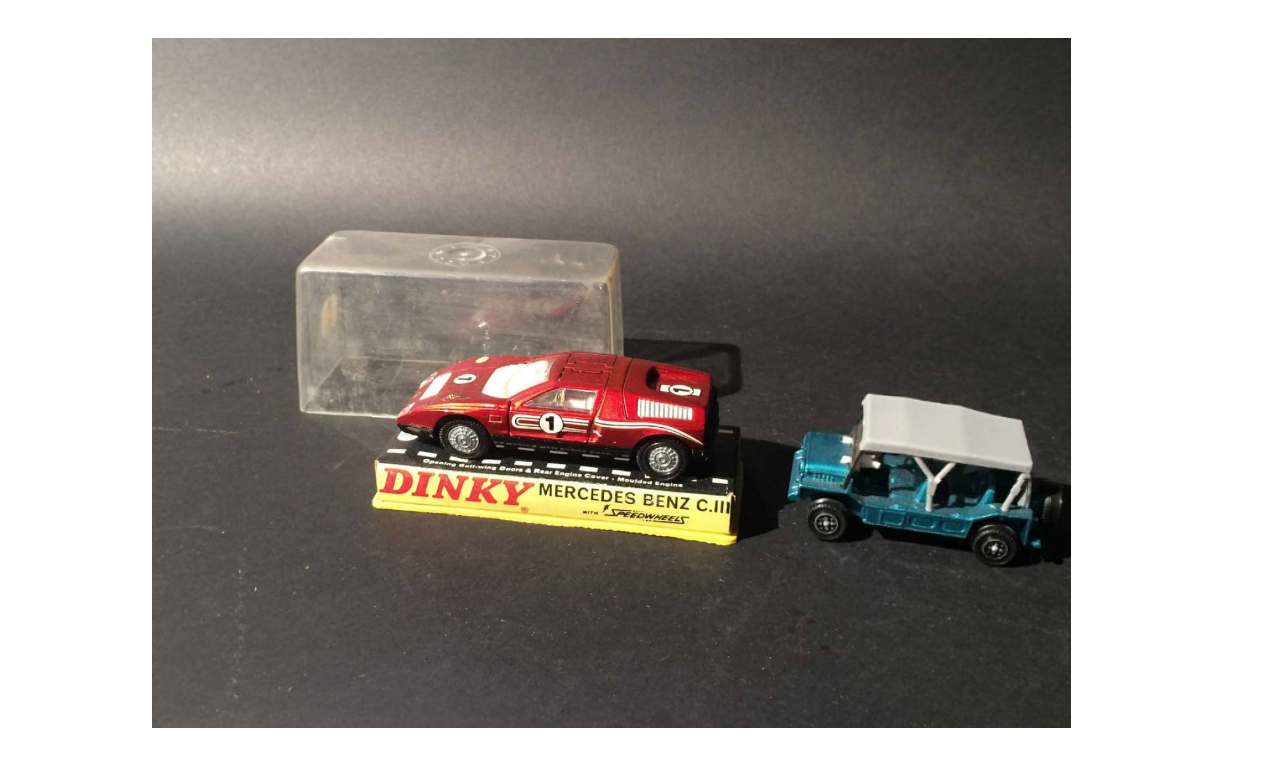 Set with two vehicles Dinky Toys Austin Mini Make without box Mercedes Benz C III in box