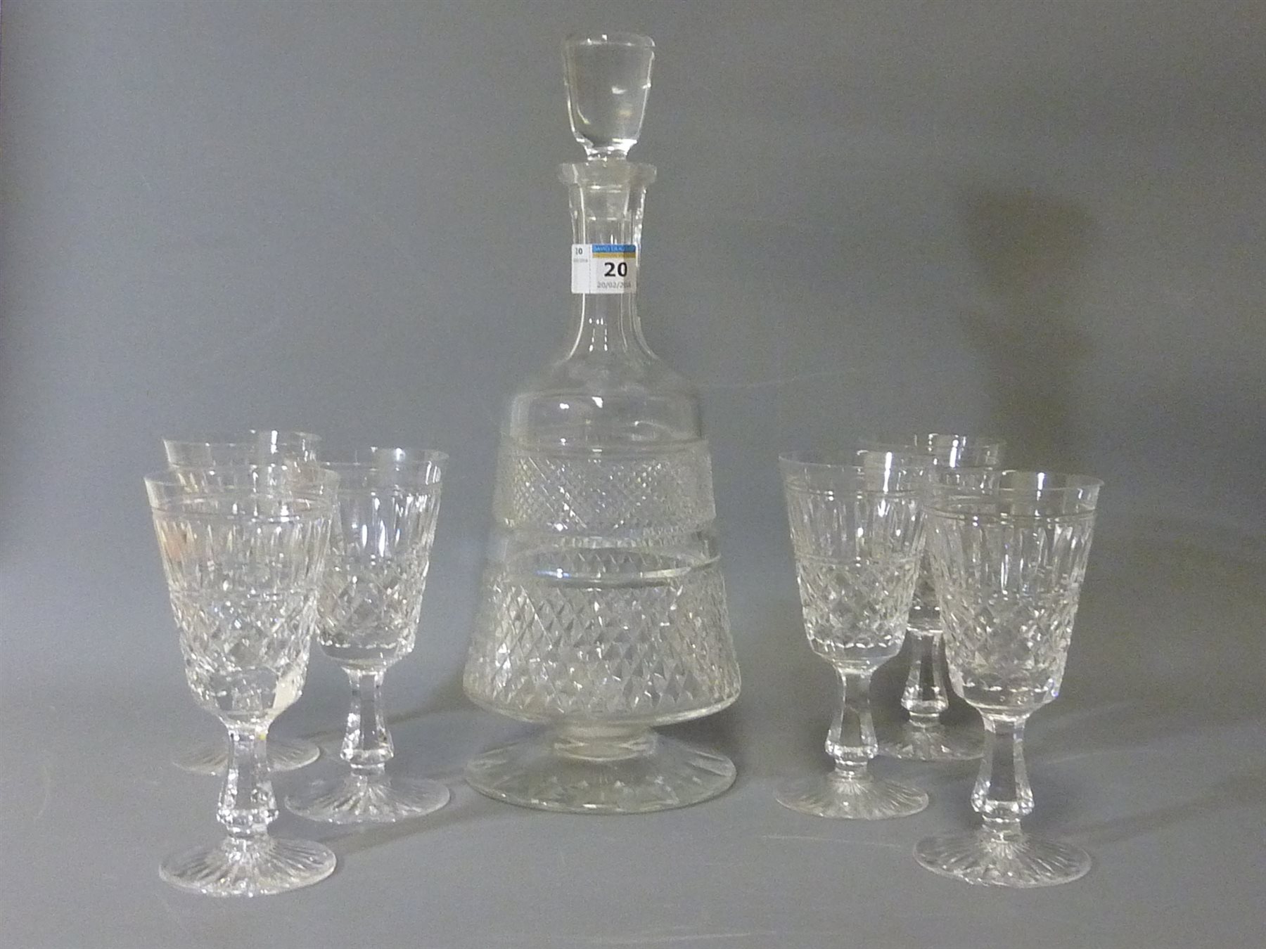 Sevres cut crystal decanter and a similar set of six Stuart wine glasses
