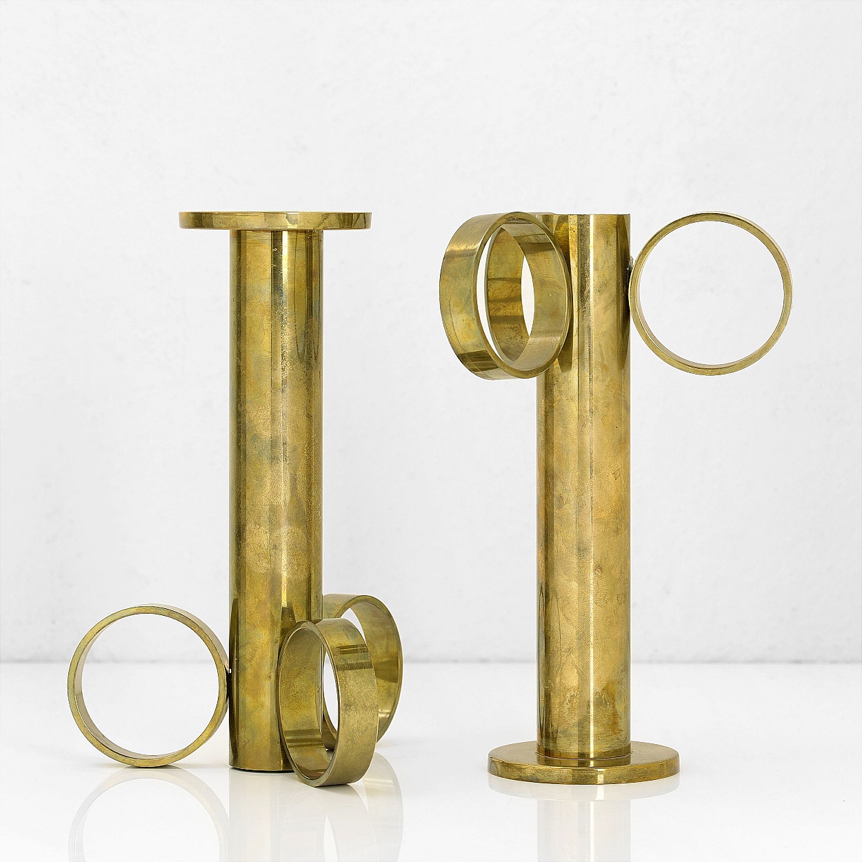 SIGURD PERSSON, a pair of brass candlesticks, 1960´s, signed SIG P SWEDEN, h 21 cm
