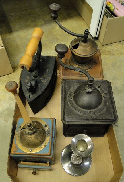 Silver ljusstake, fylld, H15cm, 3st kaffekvarnar samt strykjärn