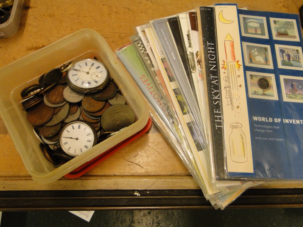 Silver pocket watches, coins and First Day covers.
