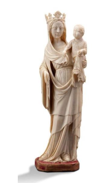 Small Virgin with child carved ivory, the child holding in his right hand the veil of the Virgin and in his left hand the Bible