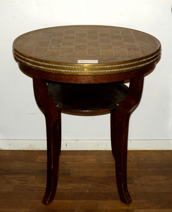 Oak and brass. Around 1900. height 67 and diameter 61 cm.