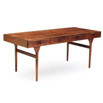 Free-standing Brazilian rosewood desk, front with four drawers in rail