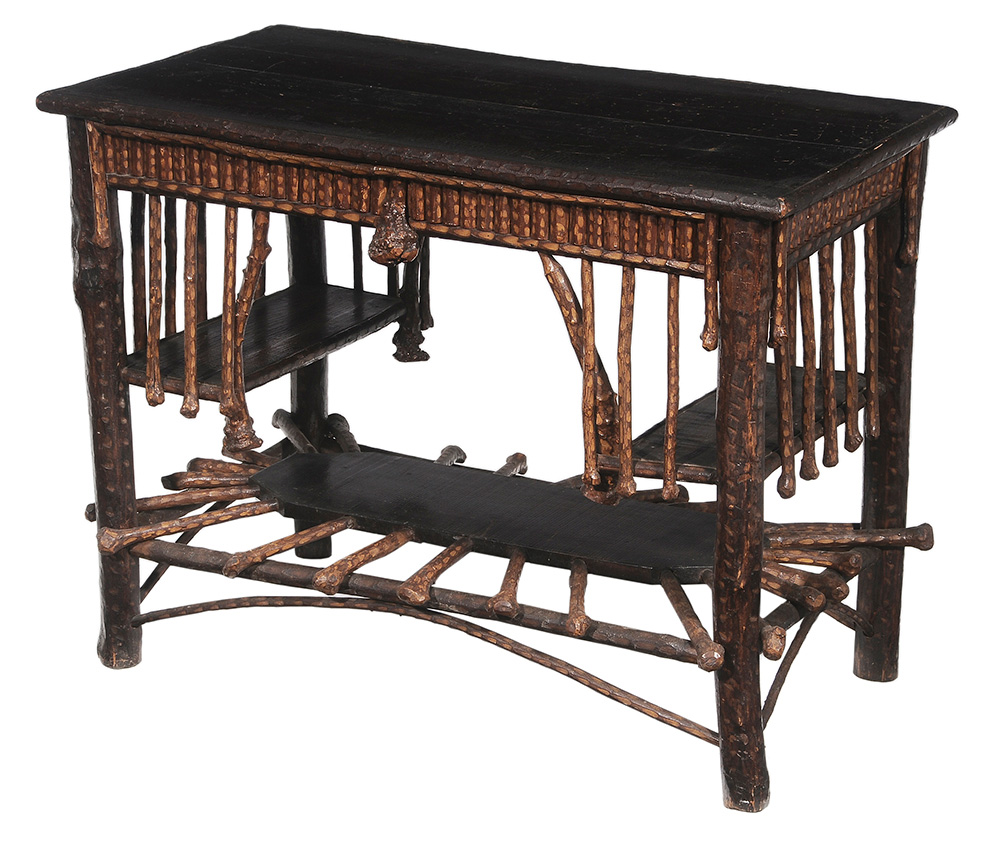 Southern Rustic Twig and Chip-Carved Two-Tier Side Table