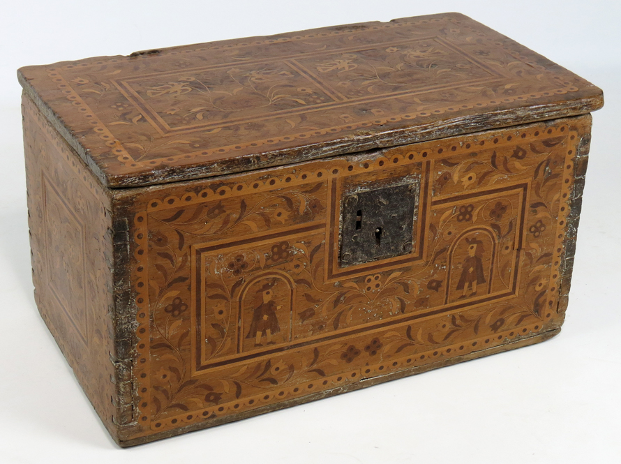 SPANISH COLONIAL INLAID CEDAR SMALL TRUNK, 18th century