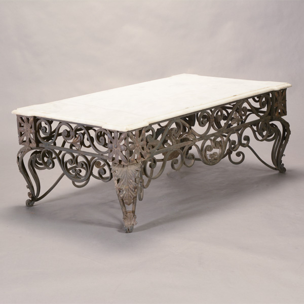 Spanish Colonial Style Wrought Iron and Tole Coffee Table with Marble Top