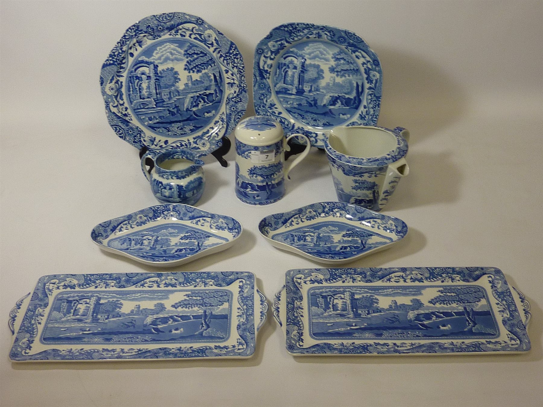 Spode Italian Garden flour caster, strainer jug, pair of platters, small jug, pair of quatrefoil dishes and two plates (9)