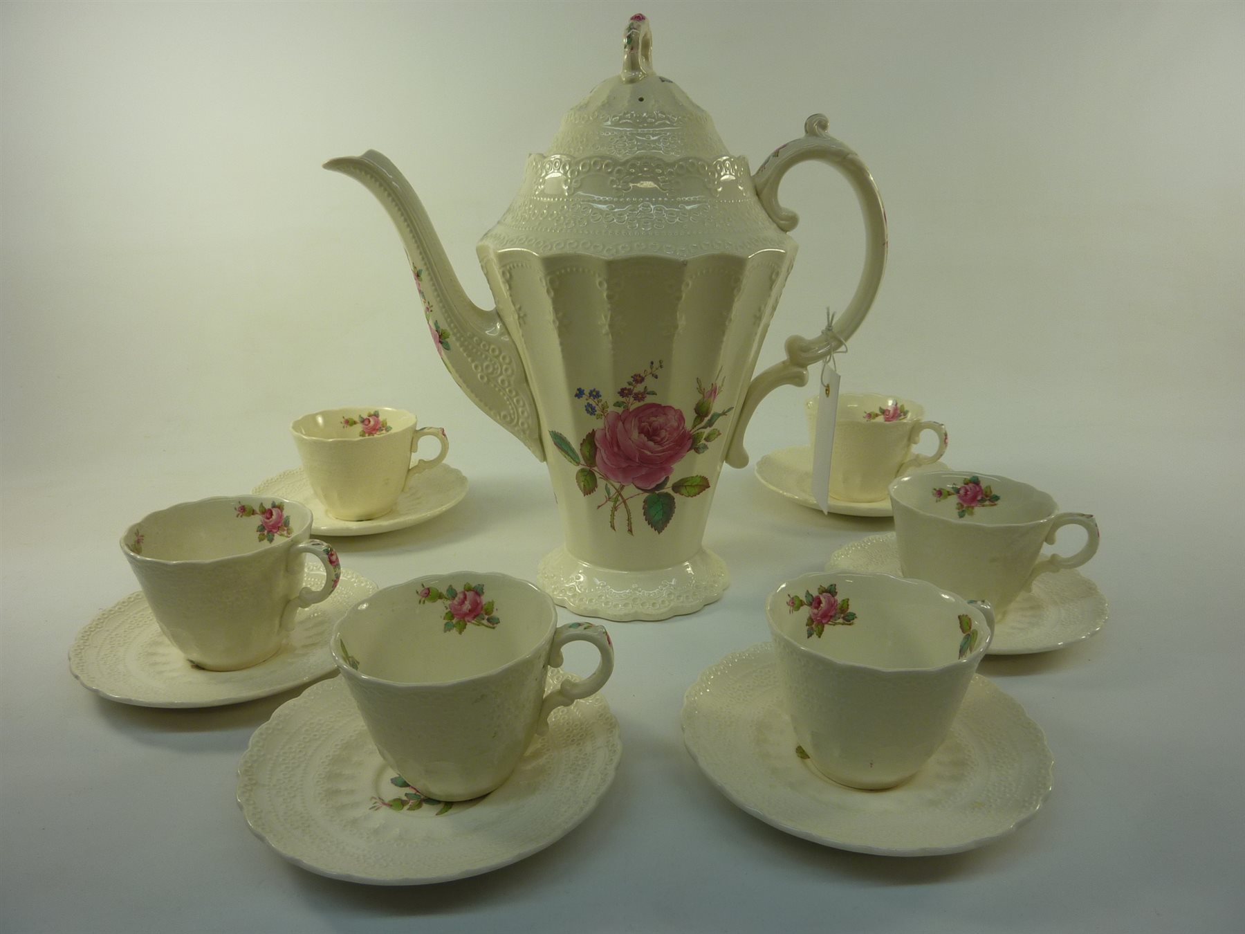 Spodes Jewel creamware style coffee set in the 'Billingsley Rose' pattern - six place settings