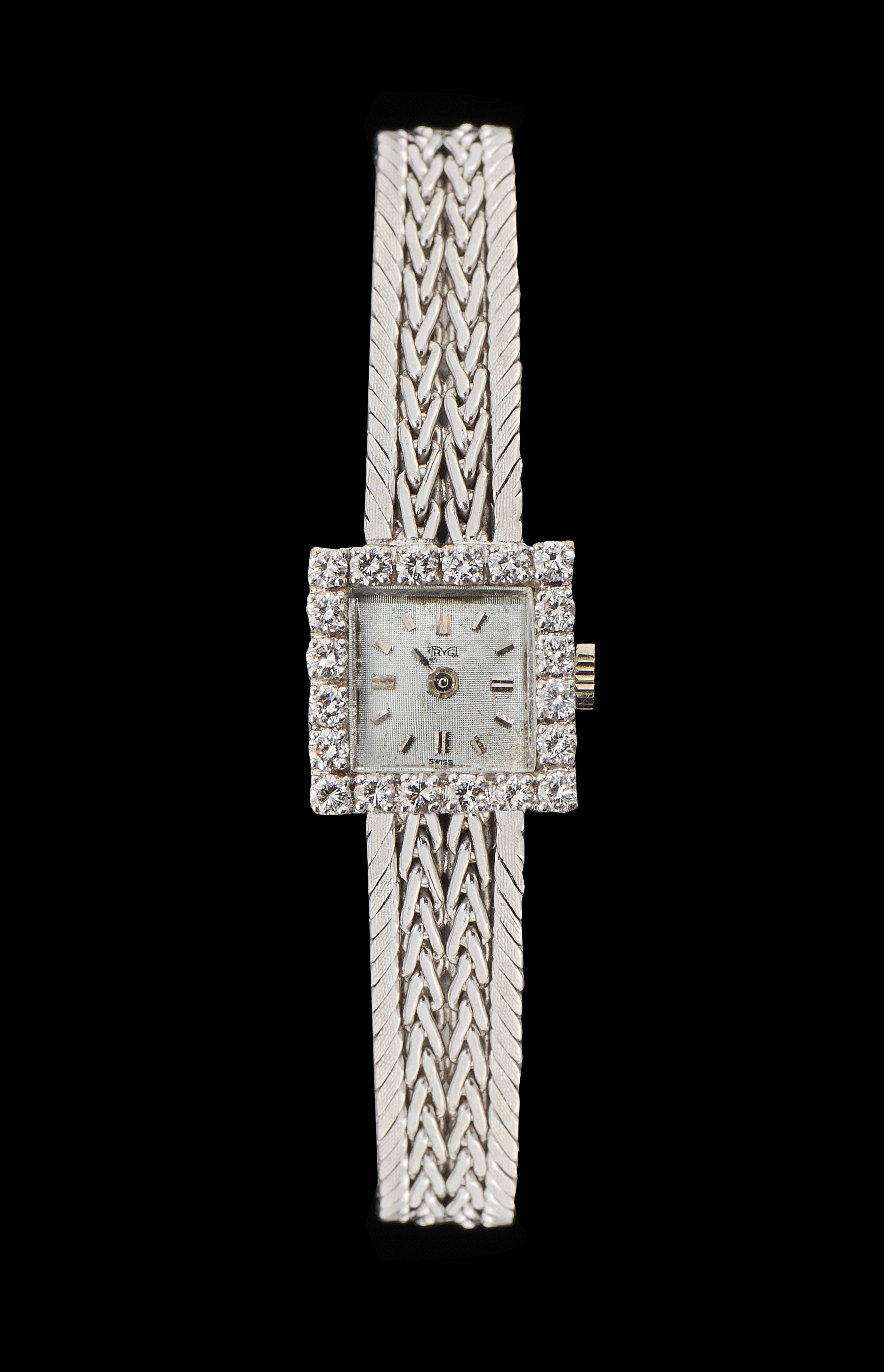Square mechanical wristwatch set with diamonds