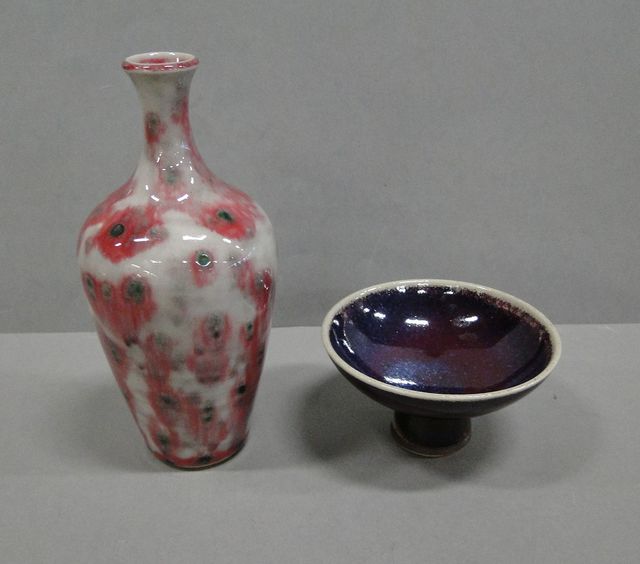 Sven Hofverberg, vas samt skål på fot, H18 & 5,5cm D10,5cm, vas med glasyrsprickor