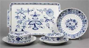 Tablett, Brotkorb, Butterdose und Käseglocke, Meissen.