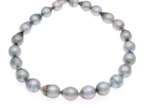 Tahitiperlen strand with 24 very fine baroque silbergrahmen Tahitiperlen 14 - 12 mm with excellent luster, L. 41 cm, 97,3 g