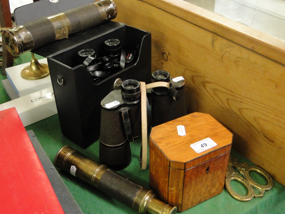 Telescope, tea caddy, binoculars, etc