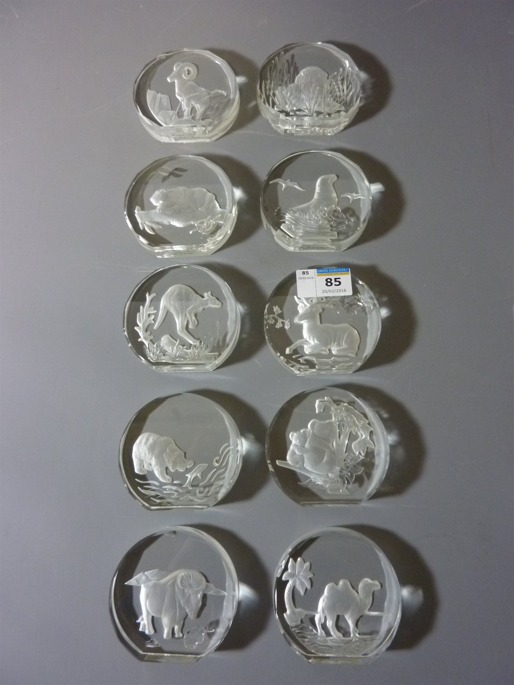 Ten Danbury Mint Wildlife Crystals in one box