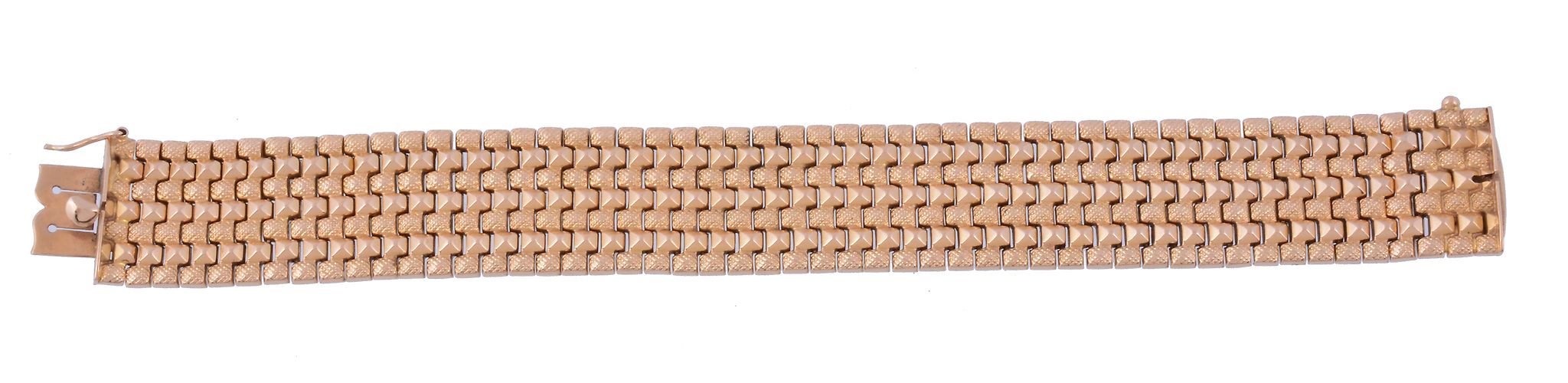 the articulated bracelet composed of textured and polished links, to a concealed clasp, stamped 750 with Italian control marks, 19.5cm long, 52.6g