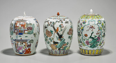 Three Old Chinese Enameled Porcelain Covered Jars
