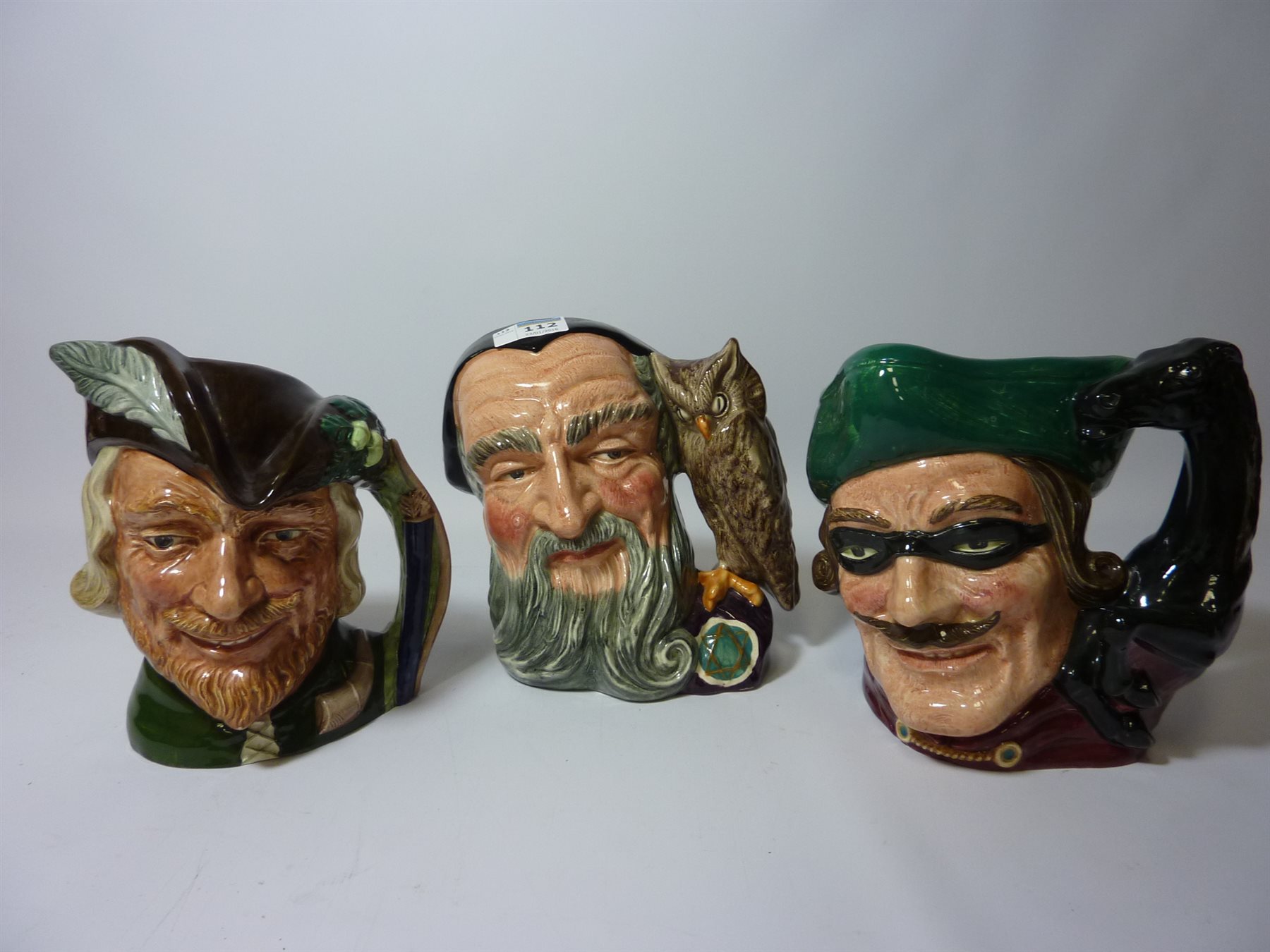 Three Royal Doulton character jugs - 'Merlin', 'Robin Hood' and 'Dick Turpin'