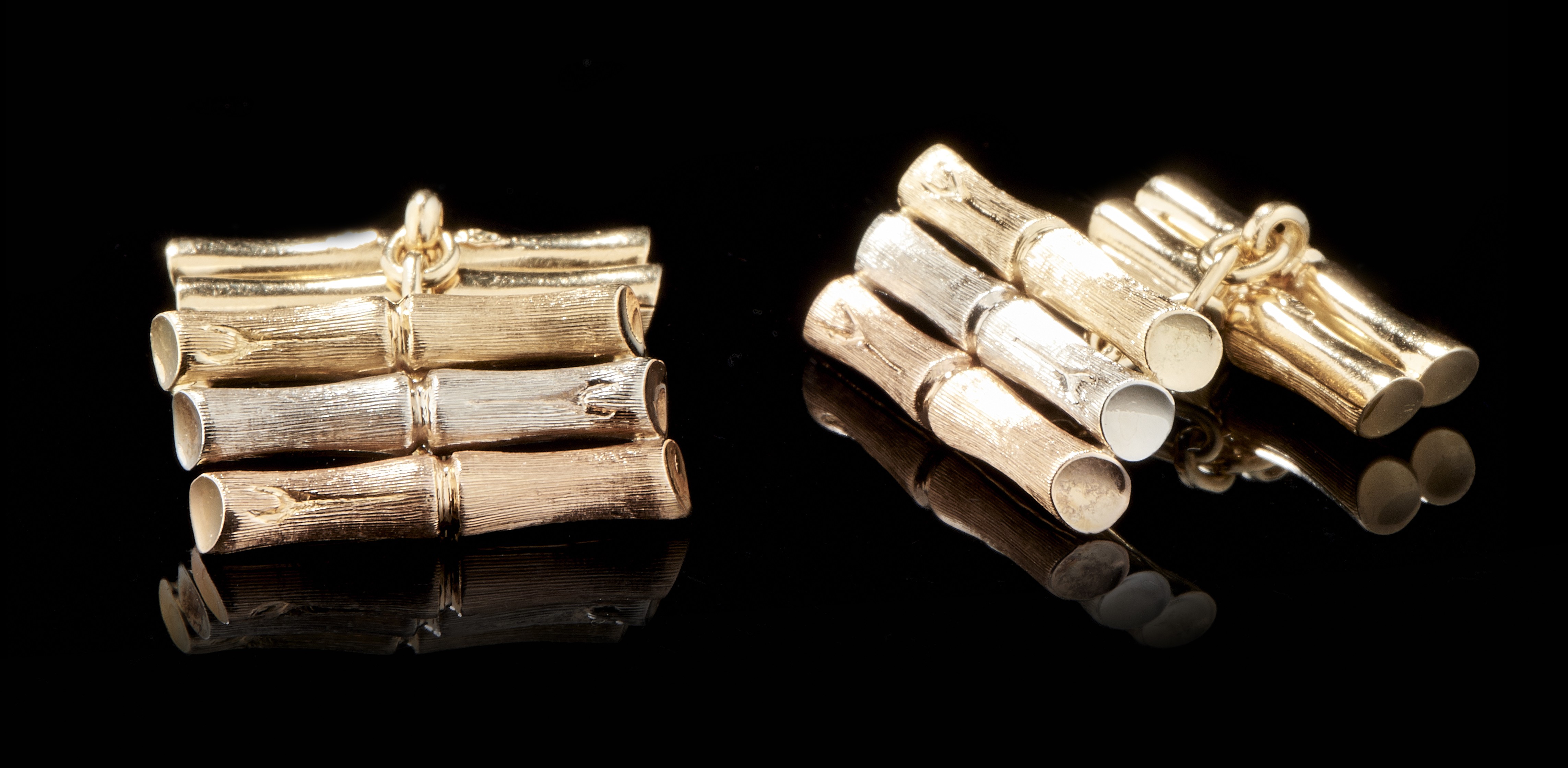 Three satin gold bamboo cufflinks Gold, 750g gray and 750g gold, 14g