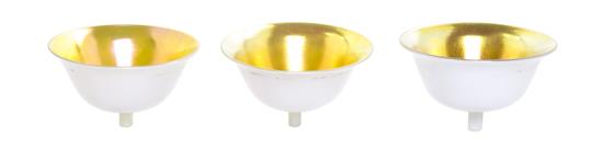 Three Steuben Calcite and Gold Aurene Glass Inserts each of typical form with a gold interior and calcite exterior